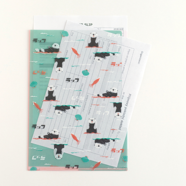 百貨店の包装紙を連想させるパターン柄がかわいいA5ポケットクリアファイル