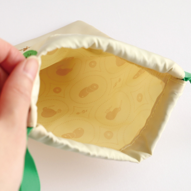 レアアニマルと関連するモチーフの刺繍が美しい巾着です。
