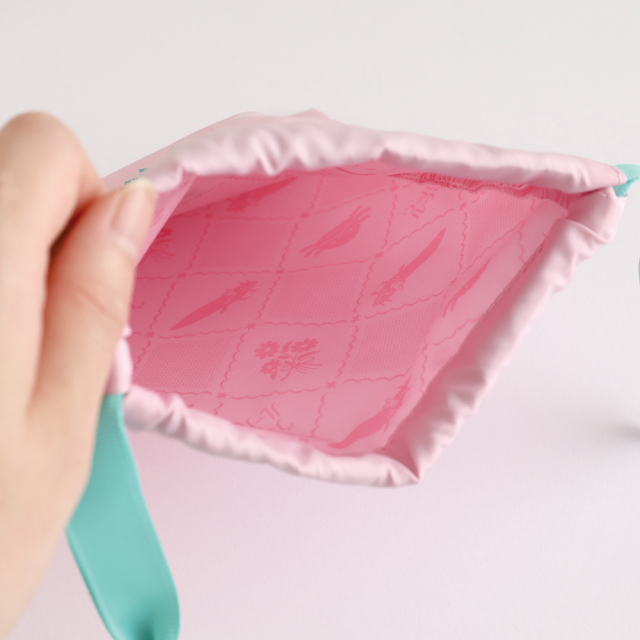 レアアニマルと関連するモチーフの刺繍が美しい巾着です。