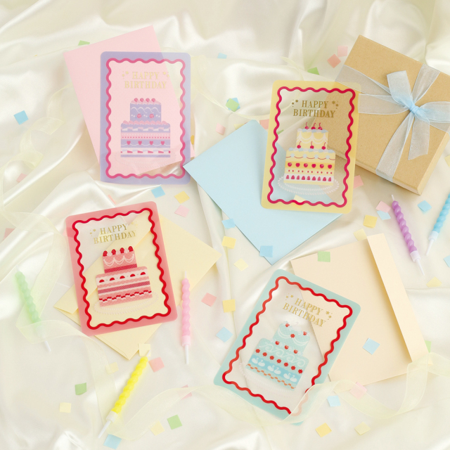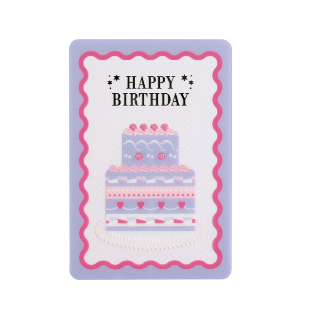 人気のウェーブモチーフにカラフルな色合いとクリア素材ならではの透け感を組み合わせた、飾って楽しいバースデーカードです。
