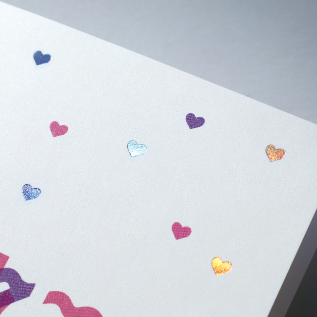 ポイントに散りばめられたハートマークには、オーロラ箔を使用しています。