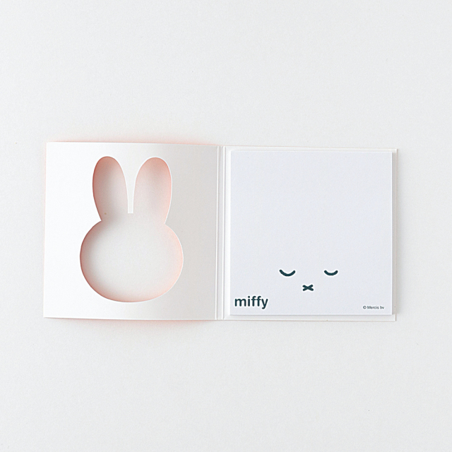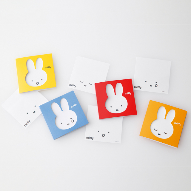 顔のかたちに切り抜かれた台紙からミッフィーの表情がのぞく、持ち歩きにも楽しいふせんです。