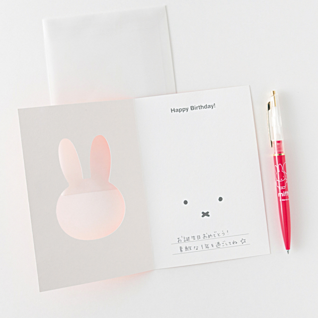 カードの窓からミッフィーの顔が見えるバースデーカードです