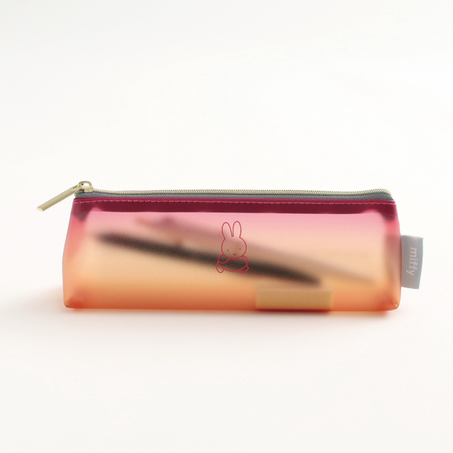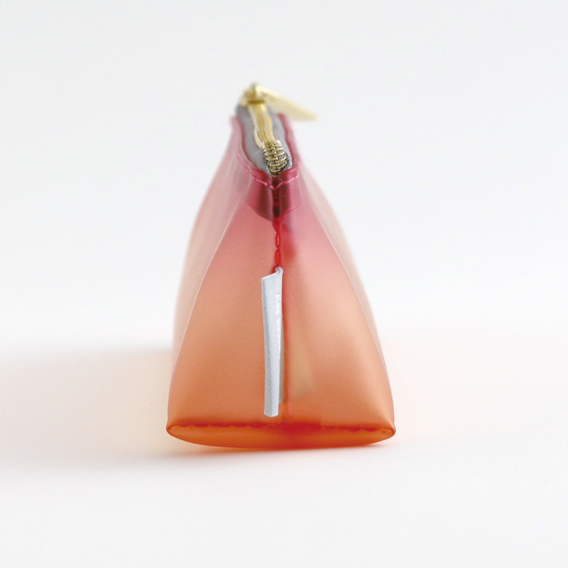 マットな質感のPVCにグラデーションをプリントした色の重なりと透け感が美しいペンポーチです。