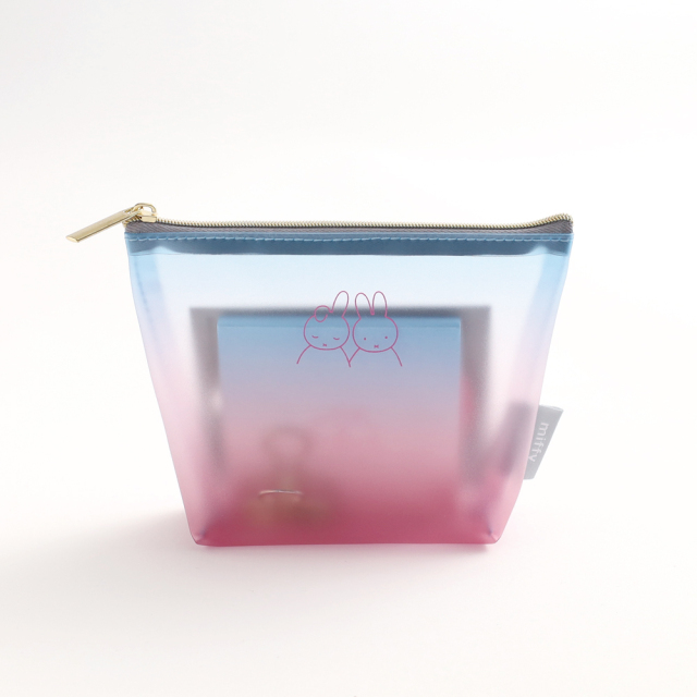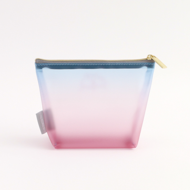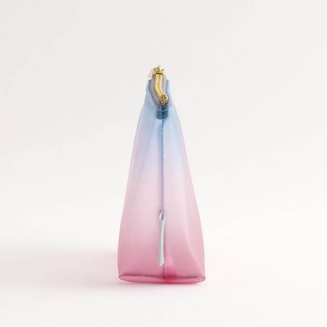 マットな質感のPVCにグラデーションをプリントした色の重なりと透け感が美しいポーチです。