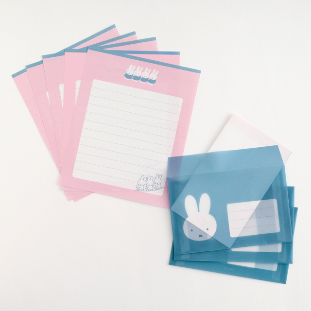カラフルなトレーシングペーパーの封筒のレターセット。透明感があり、便箋を入れるとミッフィーのお顔が柔らかに現れます。