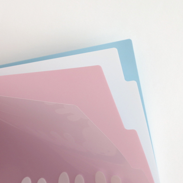 書類の整理にぴったりな3ポケットのA4クリアファイルです。
