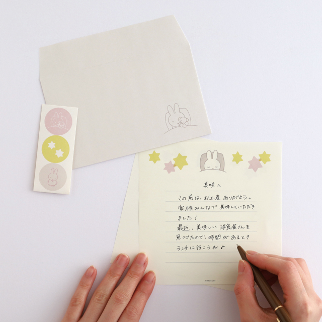 【サイズ】便箋:W140×H140mm、封筒:W150×H92mm(定形内)、封シール:直径25mm