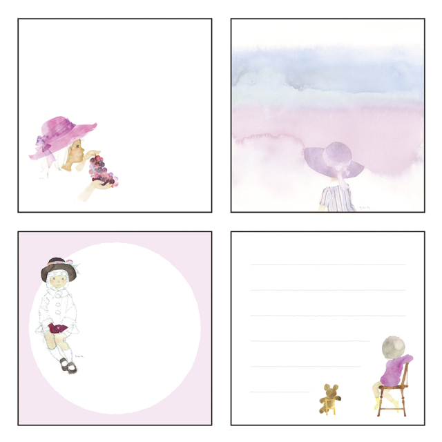 4種類の絵柄が楽しめる、スクエアタイプのメモパッドです
