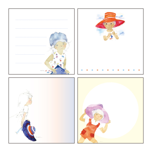 4種類の絵柄が楽しめる、スクエアタイプのメモパッド