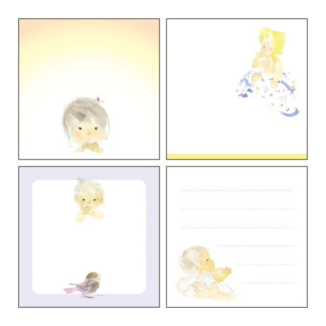 4種類の絵柄が楽しめる、スクエアタイプのメモパッド