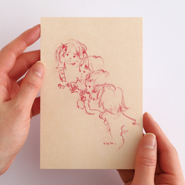 いわさきちひろのスケッチ画を色とりどりのポストカードに落とし込み、子供のころのなつかしくてあたたかい雰囲気を表現しました。