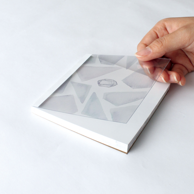 表紙はクリアタイプの硬質塩ビに絵柄をプリント、樹脂盛り加工をほどこし、