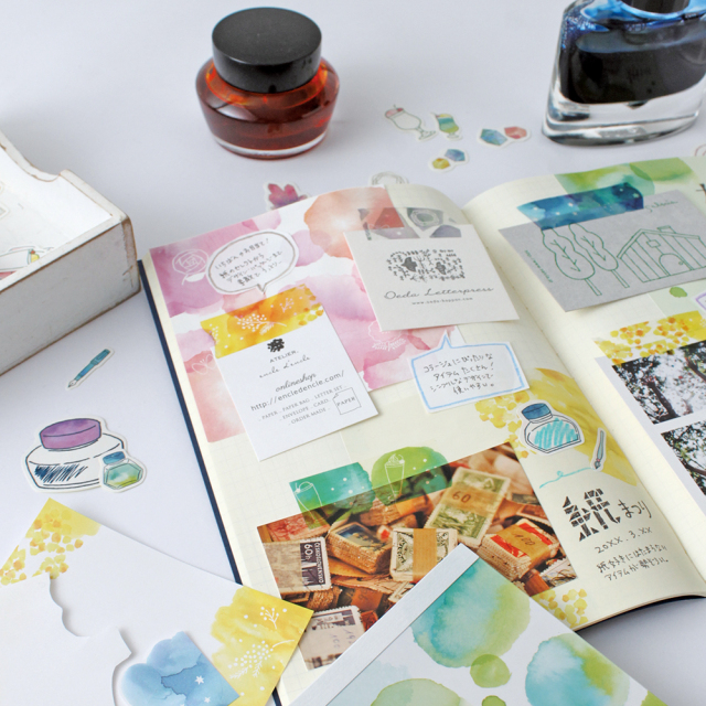 インクの濃淡やにじみ感が美しく、貼ったものをインクで染めたように見せることができます。