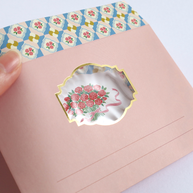 封筒に便箋を入れると窓から花束が見える仕掛けに。