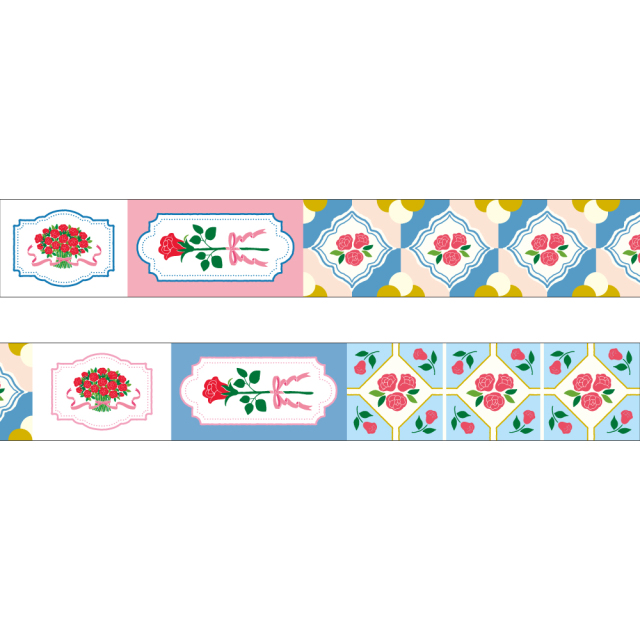 花束とレトロなタイルデザインがかわいいマスキングテープ