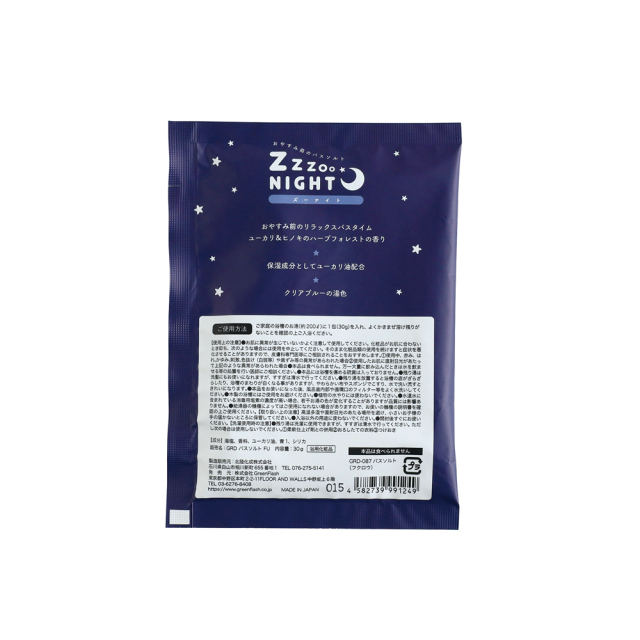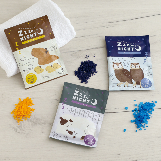 いびきを表すzzzと動物のzooをかけ合わせたズーナイトバスソルト。