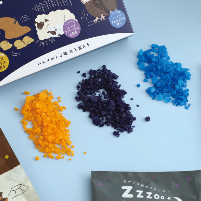 いびきを表すzzzと動物のzooをかけ合わせたズーナイトバスソルト。