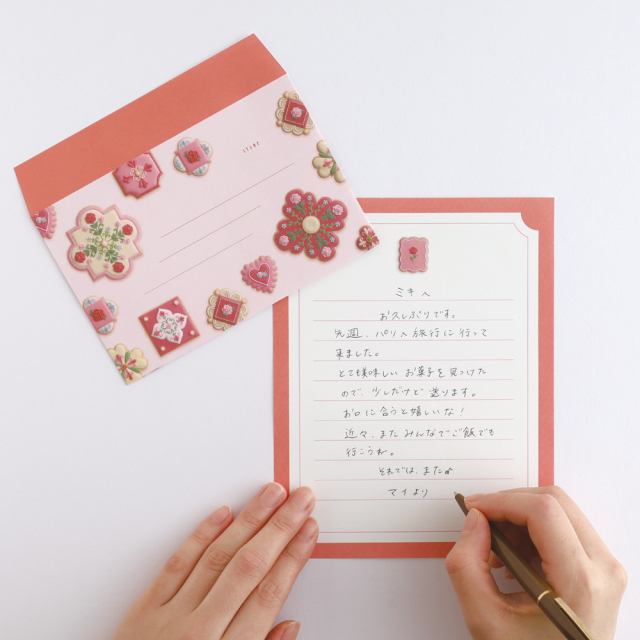 【サイズ】便箋:W140×H180mm、封筒W145×H95mm(定形内)、封シール:直径27mm