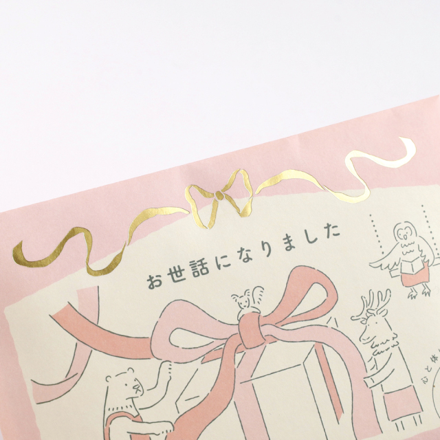 パッケージのリボンは、金箔押しで表現されています。
