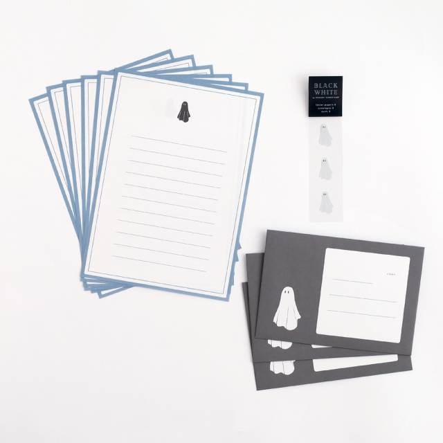 オバケ、クロネコの絵柄が印象的なレターセット