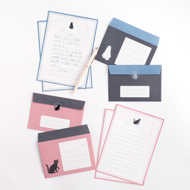 オバケ、クロネコの絵柄が印象的なレターセット