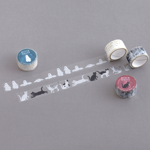 オバケ、クロネコの絵柄が映えるクリアタイプのマスキングテープ