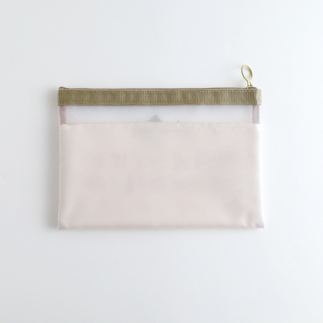 見せたいものと見せたくないものを分けることができ、前後のデザインの重なりも楽しめる学べるメッシュポーチです。