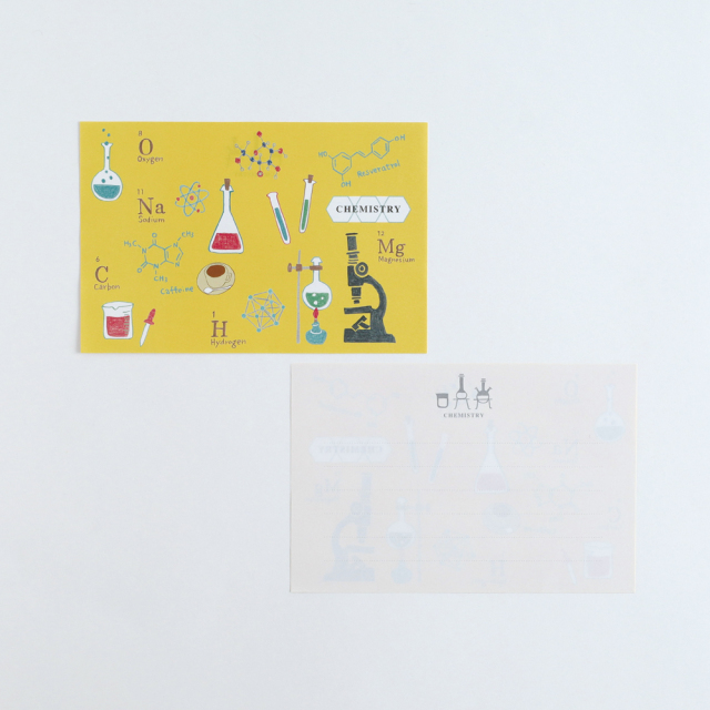 便箋を封筒に入れると図鑑のような絵柄がのぞく、学べるレターセットです。封シールにもそれぞれの学問の絵柄がついています。