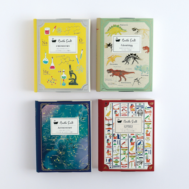 図鑑のようなBOXに入った3包セットのバスソルト。