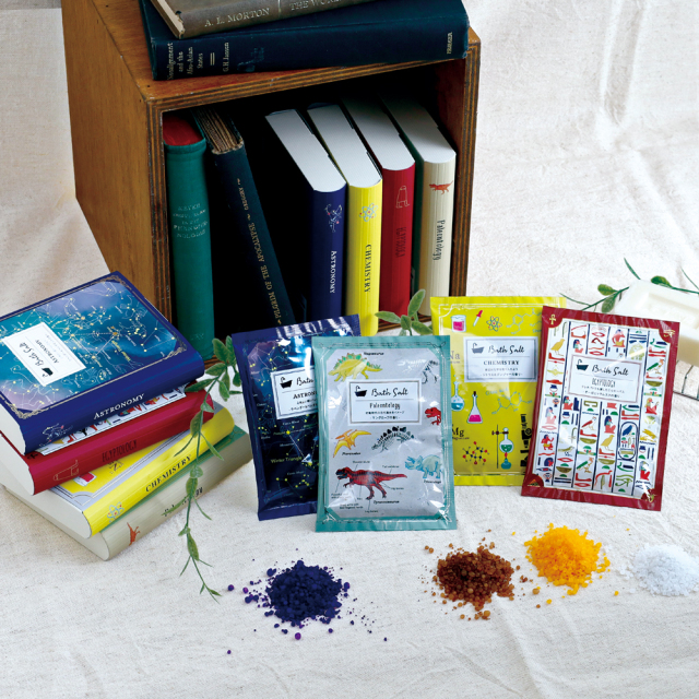 STUDY HOLICシリーズより、入浴剤が登場!それぞれの学問をイメージした香りと湯色をお楽しみいただけます。