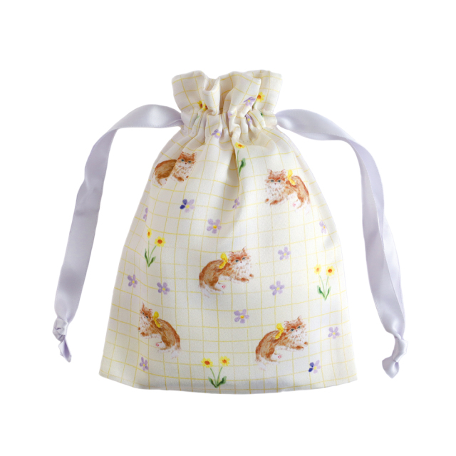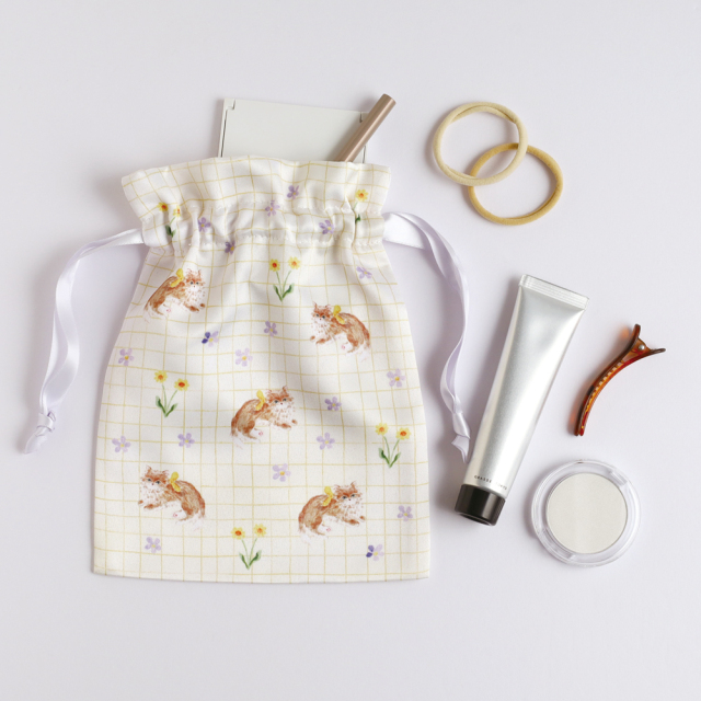 コスメやモバイルアクセサリーなどの小物をまとめるのにちょうどいいサイズ感の巾着です。