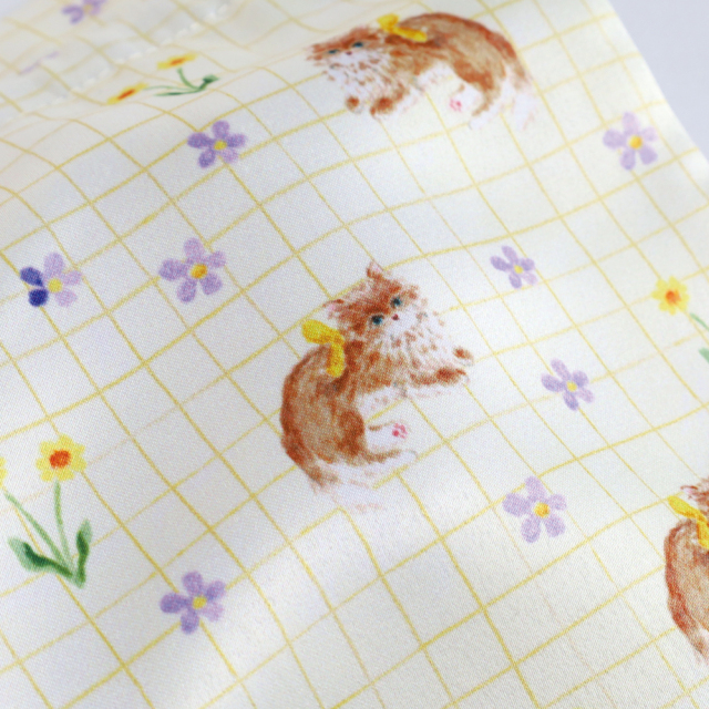 程よい光沢感の優しいカラーリングのサテン生地がイラストの可愛さを際立たせます。