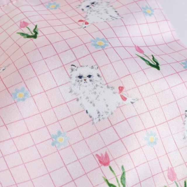 程よい光沢感の優しいカラーリングのサテン生地がイラストの可愛さを際立たせます。