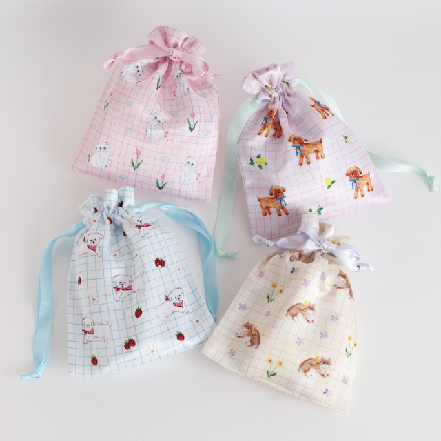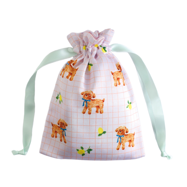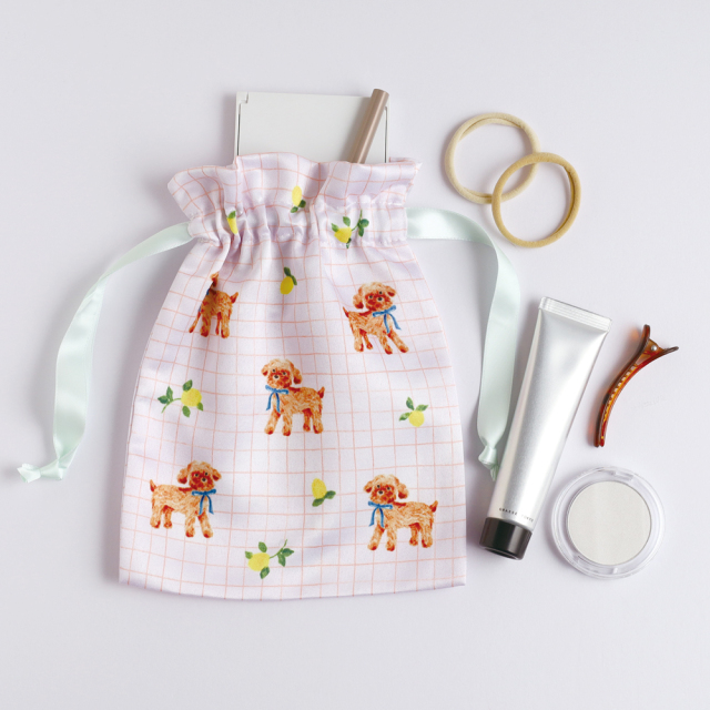 コスメやモバイルアクセサリーなどの小物をまとめるのにちょうどいいサイズ感の巾着です。