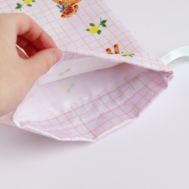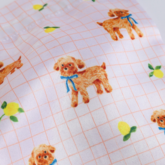 程よい光沢感の優しいカラーリングのサテン生地がイラストの可愛さを際立たせます。
