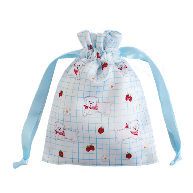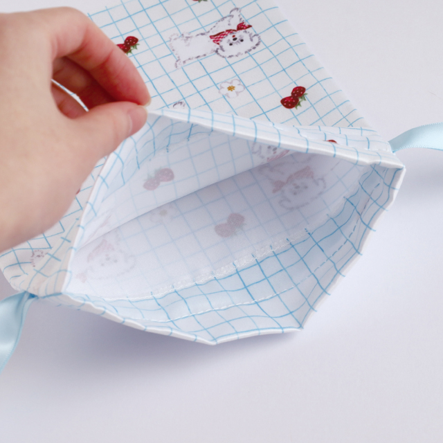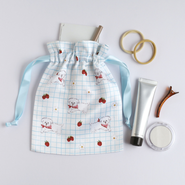 コスメやモバイルアクセサリーなどの小物をまとめるのにちょうどいいサイズ感の巾着です。