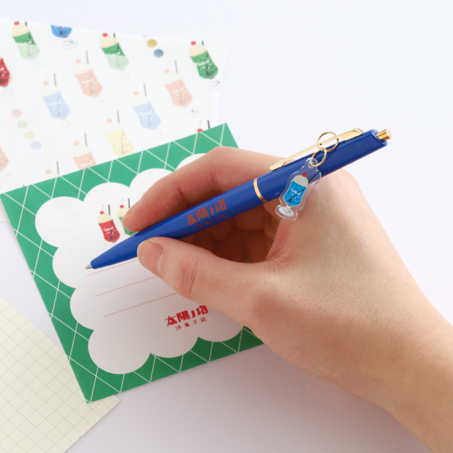 クリームソーダとマッチしたカラーリングがかわいいチャーム付きのボールペンです。