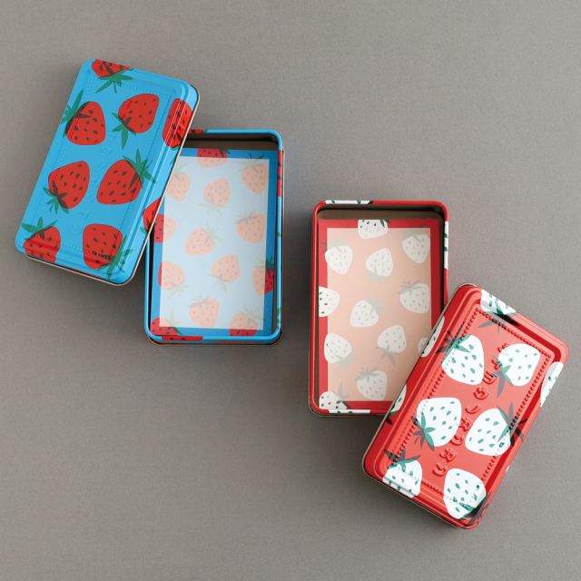 【セット内容】イチゴ缶1個・メモパッド1冊・メモパッド中紙100枚(1柄×100枚)