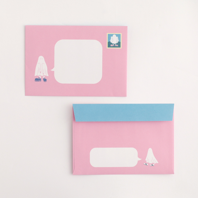 封筒の宛先部分は、まるでおばけたちが会話をしているように見える仕掛けになっています。